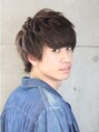 つくり込み過ぎない無造作な動きが男らしいクセ毛風マッシュスタイル。サイドはツーブロックでスッキリさせ、襟足は少し長さを残す事で柔らかさの中にも男らしさを。