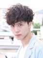 ツイストパーマであえて無造作に散らしたパーマスタイル。サイドはツーブロック、襟足はスッキリ切りきる事でメリハリをプラス。つくりこまないバサッとした印象が男らしさを感じるスタイルです。