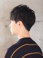 定番の束感スマートマッシュショート。ニュアンスパーマで重い印象になりがちのマッシュも柔らかい印象に。サイドはツーブロック、襟足は軽めに刈り上げる事でメリハリを出しています。