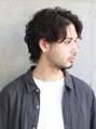 かき上げただけの様なラフなスタイリングが男らしいくせ毛風パーマスタイル。無造作に動きつつ、おでこを出すことでスッキリとした印象もプラス。ハイライトで立体感も出しています。