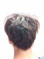 サイドから襟足までをツーブロックにして、フロントからトップを重たさを残してカット。根元から立ち上がりと動きをつけるようにカットしました。
