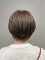 すっきりとした印象のショートヘアに、フェザーカットで軽やかさをプラス。顔まわりに動きが出ることで小顔効果も◎ 風になびく柔らかい質感が、ナチュラルで大人可愛い印象に仕上がるスタイルです。