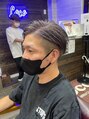 グレーシルバーのハイトーンが際立つ、爽やかなウェットスタイル。サイドはすっきりと刈り上げ、トップはオールバックに流して男らしさを強調しています。ジェルやグリースでツヤ感を出すことで、個性的でクールな大人の雰囲気を演出。