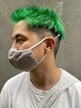 ネオングリーンと刈り上げを組み合わせた、圧倒的な存在感を放つメンズショートスタイル。トップの長さを活かした躍動感ある動きと、サイド・バックのすっきりしたコントラストがクールで都会的な印象を演出。