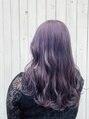 透明感あふれるペールパープル。ダメージを最小限に抑えるケアブリーチを使用し、触りたくなるようなウル艶な仕上がりに。透明感抜群の柔らかな色味で、一気に垢抜けた印象を叶えます。光に当たるとさらに魅力が増す、人気カラーをぜひお試しください。