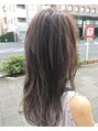 細めのハイライトベースとやや太めのハイライトを交互にドライヤーで短い毛を飛ばしながらくっきりと均一なハイライトを入れるエアータッチを使いながらのデザイン。ベースのカラーと差をつけてコントラストつけているのもポイント。レイヤーデザインにも◎