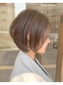 女性らしいゆったりとした柔らかいショートボブ。長めのショートでも後ろのシルエットの丸みはしっかりと。カラーは少し明るめのようだけど、ラベンダーを入れたベージュで安定した明るさの色味に。艶と軽い抜け感。両方楽しめるカラー。