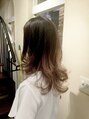 黒染めを重ねていた毛先を2回ブリーチ根本~中間の赤味を消しながら毛先は、アッシュベージュでやわらかく色落ちも楽しめます!コテ巻きしてもゆるく束ねてもまわりと差が出るのでおすすめです!