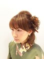 片サイドにポイントを持ってきたスタイル☆高さとおくれ毛を作る事で、縦長のラインに!小柄な方でも重すぎず、バランスのとれたスタイルになってます♪短めのスタイルの方でも十分に出来ますのでオススメですよ♪