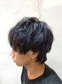 ネイビーブルー ウルフマッシュ スパイラルパーマ
