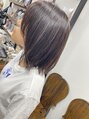 ほんのりバイオレットで落ち着きがあるけど透明感あるカラーがかわいい!顔周りはちょこっとレイヤーで軽さのあるボブもかわいいです!