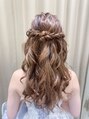 トップは軽くルーズにし、ダウン部分はミックス巻きで動きを出してます。このハーフアップは、シンプルですがどんなお衣装にも合う王道スタイルです。