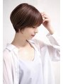 小顔似合わせカットで再現性重視でカット。バックにボリュームが出るようにドライ後バーム系やオイル系のスタイリング剤を少しつけて貰えればOK楽ちんスタイル。部分パーマや部分ストレートも対応可。大人ショート 耳掛け くびれショート ひし形シルエット