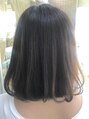 重ためレングスのふんわりボブ*全体はグレージュの暗髪にハチ辺りからグラデーションで太めのハイライトを*下のほんわり可愛い丸みとカラーの透ける様な抜け感*ハイライトでストレートでも動きのあるスタイルに★