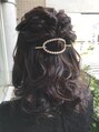 ゆるやかに揺れるカールのハーフアップ*くるりんぱとねじり編みをくずしてアンニュイ魅力と透明感を*パールのヘアアクセをプラスして華やかさもアップしますよ♪