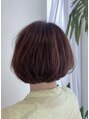 襟足ギリギリのふんわりボブにカット。表面に少しグラデーションを入れてまあるいシルエットになるようにしました。トップにボリュームが出にくい方もおススメスタイルです。カラーは艶が出て色持ちが良いパープルブラウンにしました。