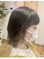 カットは肩上のボブにカット!ポイントに顔まわりに羽バングを作りました!髪を結んでも可愛いです!カラーは前回を暗めのグレージュにしてイヤリングカラーでサイドをブリーチしてグレージュをのせました!耳にかけたりしてもお洒落でオススメです!