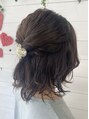 結婚式に参列されるお客様をヘアセットしました!ウルフカットをされていて、サイドの髪の毛が短かったのでハーフアップにさせて頂きました!髪の毛が短い方でもヘアセット可能です♪