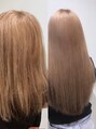 ミルクティーベージュは、ブリーチを伴うことが多いため、髪質改善トリートメントとの併用が非常に効果的です。トリートメントにより、パサつきがちなハイトーンヘアにうるおいやツヤを与え、色持ちを良くする効果が期待できます。