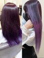 黒髪からパープルへのグラデーションエクステは、地毛を傷めずに個性的で華やかなロングヘアを実現する人気スタイルです。光の当たり具合で様々な表情を見せる、透明感のあるパープルを楽しめます。