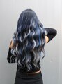 外国人風のブルー系カラーはエクステで叶える根元の暗髪から毛先のホワイト系ハイライトへのコントラストが最高にクールです!ダメージレスでイメージチェンジで透明感あるデザインカラーはいかがですか?