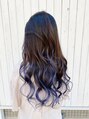 根元から毛先にかけて流れるようなブルーのグラデーションカラーがお洒落度MAX! 暗髪ベースだから挑戦しやすく、色落ちの過程も楽しめるデザインです。周りと差をつけるクールなスタイルはいかがですか?