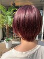 艶感が魅力のレッドパープル系カラー。深みのある色味で、落ち着いた印象ながらもしっかり個性を演出できます。ボブスタイルに合わせることで、重たくなりすぎず、光に当たると透けるような柔らかさが出ますよ◎