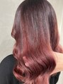 根元から毛先にかけて自然に明るくなるピンク系グラデーションカラーは、地毛を活かしつつ大胆なイメージチェンジを叶えます。毛髪を保護しながら施術するケアブリーチを使用することで、気になるダメージを最小限に抑え、艶やかで美しい仕上がりを実現。
