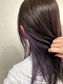 落ち着いたダークトーンに映える、洗練されたラベンダーパープルのインナーカラー。耳掛けやヘアアレンジでチラリと覗くパープルが、さりげない個性を引き立て、一気に垢抜けた印象を叶えます。周りと差をつけたい遊び心あふれるデザインカラーをぜひ。