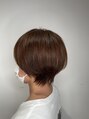 ショートでも表面の毛先のカールを出し、女性らしさを出しました。襟足を軽くすることで後頭部の膨らみを強調します。襟足のつまった洋服でもスマートショートでスッキリきまります。