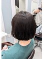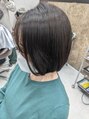 ショートボブです♪クセがあってもおさまりやすいです◎ショートから伸ばし中の方にもオススメです(^^)カラーは落ち着いたクール系ターコイズブルーで透明があります◎頭皮がしみやすい方、ハリ・コシほしい方に頭皮保護オイルしてます!是非お試し下さい♪