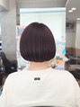 丸みがあって可愛いボブ。首を長く見せるように襟足はギリギリのラインでカットします。輪郭を綺麗に見せる長さにし、似合わせカットします!