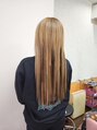 もつれにくいエクステ☆レシル★セミロング60本です。明るい自毛だったので、低いトーンのローライト入れました。お洋服か黒だったので、ローライトが目立たないけど、気に入っていただきました\(^^)/