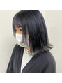 インナーにアイスブルーを入れています!ブルーとグレーとパープルでつくるアイスブルーは発色もまろやかで色落ちもかわいいです!切り込んだ顔まわりの毛はマンネリ化したスタイリングを楽しくしてくれます!