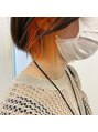 彩度高めのオレンジ、かわいいです!色もオレンジがだんだん薄くなっていく感じの色落ちになります!福岡 天神 今泉 薬院 福岡美容室 天神美容室 今泉美容室 薬院美容室 半個室 半個室美容室 インナーカラー イヤリングカラー オレンジカラー