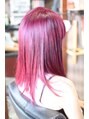 子供っぽくなりすぎない、外国人風のピンクレッドの完成です!絶妙なカラーの塗りわけが必要になるヘアカラーです。ブリーチが数回必要になりますので、要確認を。
