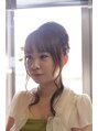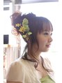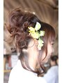 少し垂らす髪の毛が絶妙なポイントになります。衣装に合わせてお店にあった在庫の造花をサービスしてつけました!