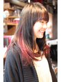 バックの内側のみブリーチ3回して、その後にディレクションカラーのダークチューリップとブラックをMIXしたものをON!深みのあるピンクが完成!!