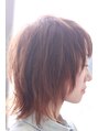 もともとのクセを生かしてカットのみでのヘアデザイン、パーマはかけていません。アールシザーでつくる自然な円みが特徴的。レイヤーと顔周りの円みを絶妙に融合させました。カラーはダブルカラーでパールライムを。柔らかさの中にモードをプラスしました。