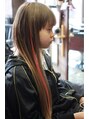 事前にくすんだカラーをブリーチ後にしてあります。その後にエクステを三色ほどMIXしてランダムに装着しています。