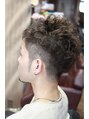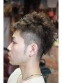 ワイルドな2ブロックと、くせ毛風のカール、カラーはコバルトアッシュで外国人風に。メンズは可愛くならないシルエットが大事!男らしくデザインします!!