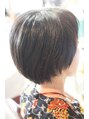 前下がりと前上がりの融合スタイル。前髪もアシンメトリーにしてつなげています。骨格補正カットでできるだけ、頭が小さく見えるカットを施しています。