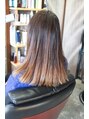 毛先厚めのグラデーションカラーです。OVERcaptainでは毎日のようにグラデーションカラーをしているのでレベルの高いグラデカラーをすることができます。カットは毛先を厚めに残し動きのあるカットデザインが特徴的です。