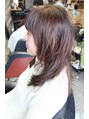 全体がペチャっとしやすい方でも骨格補正カットなら乾かしただけで自然に根元からふんわり仕上がります。カラーはパサつきが目立たないようにピンクベージュに仕上げました。