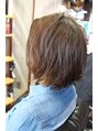 サイドの内側にハイライトをセクションで入れています。ベースはボブで、ランダムに動きをつけています。