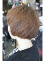 前髪が極端に短いマッシュショートです。カラーリングはダブルカラーで甘みを出さないように仕上げました!耳周りが膨らんでしまうので、自然な2ブロックに仕上がるようにベースカットで決めています。