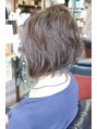 ミセスの方に人気のふんわりナチュラルパーマと前下がりのコラボデザイン。乾かすだけでかっこよくきまるヘアデザインです。ブローいらず。