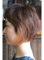 頭のカタチを綺麗に見せる骨格補正カットが特徴的です。カラーは遊びをポイントに入れたセクションカラーがトレンド。セクション部分にピンクベージュを入れて可愛らしく♪
