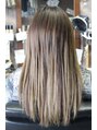 自毛をアッシュ系に仕上げてからエクステを50本装着しています。色を1色ではなく2色MIXすることによって立体感のある仕上がりに。