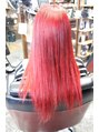 この秋トレンドのマルサラカラーを極端に目立たせた色。ブリーチ後に根元はルビーレッドとマンダリンのMIX。中間から毛先はディレクションのバーミリオンレッドとコーラルレッドのMIX。マルサラを極限化した仕上がりに♪